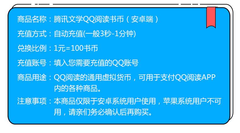 【官方直充】安卓QQ阅读书币20面值
