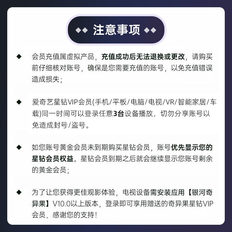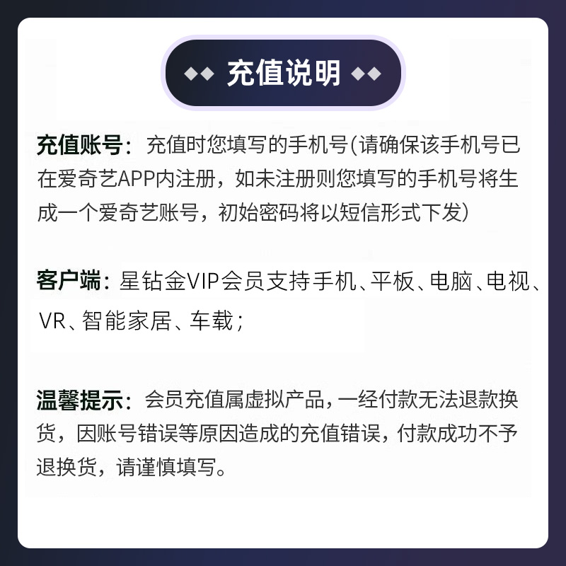 【官方直充】爱奇艺白金VIP升级星钻VIP3个月
